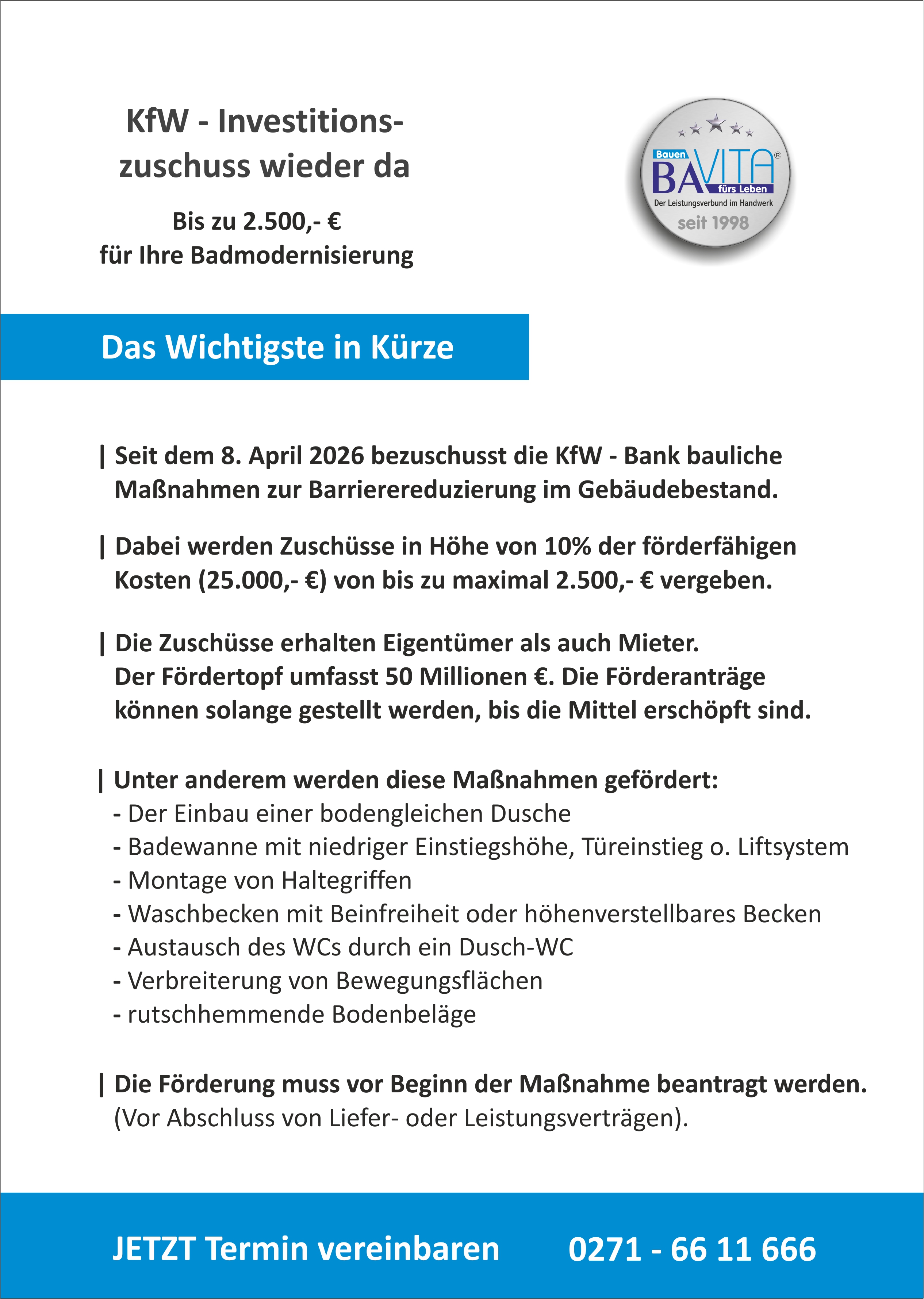 Wir kennen die Probleme, die Bauherren und Modernisierer beschäftigen. Daher haben wir Konzepte und Abläufe entwickelt, die diese und viele andere Unwägbarkeiten ausschließen. Unsere eigenen Fachkräfte arbeiten aktiv gewerkeübergreifend einander zu. Das Ergebnis ist ein reibungsloser Ablauf mit einem Optimum an Qualität, Bauzeit und Kosten. Die partnerschaftliche Zusammenarbeit und unser Service ist darauf ausgelegt, unseren Kunden einen echten Nutzen zu bieten. In über 25 Jahren haben wir bereits hunderte Projekte gemeinsam erfolgreich realisiert.Bavita-Prospekt als pdf-Download